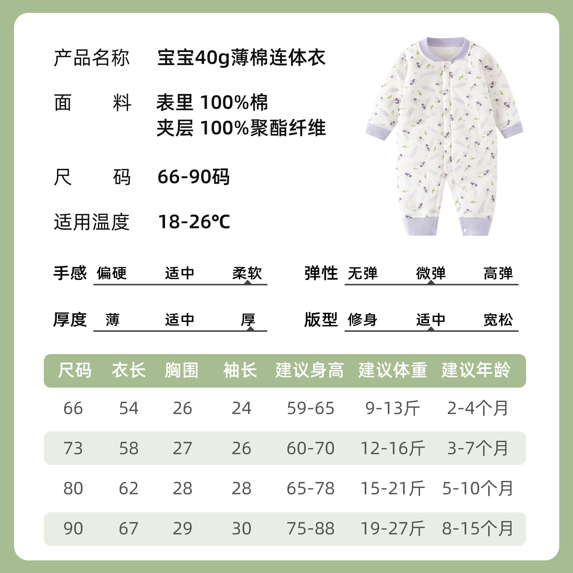 婴儿衣服秋冬季40g夹棉加厚爬服新生儿保暖连体衣宝宝a类睡衣