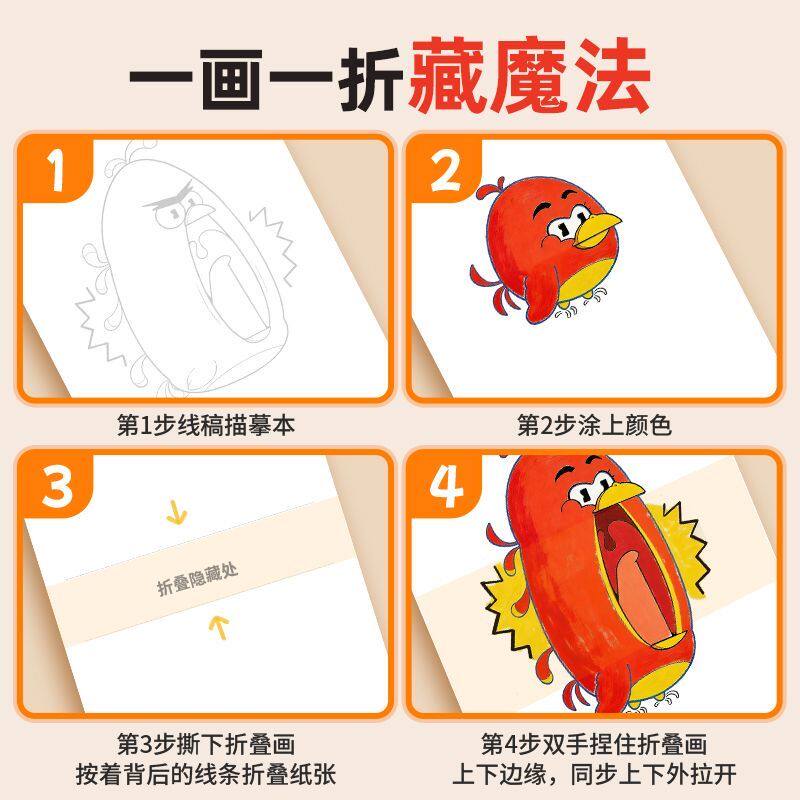 寒假新款魔法折叠画彩色临摹本 益智涂鸦 培养孩子动手绘画能力