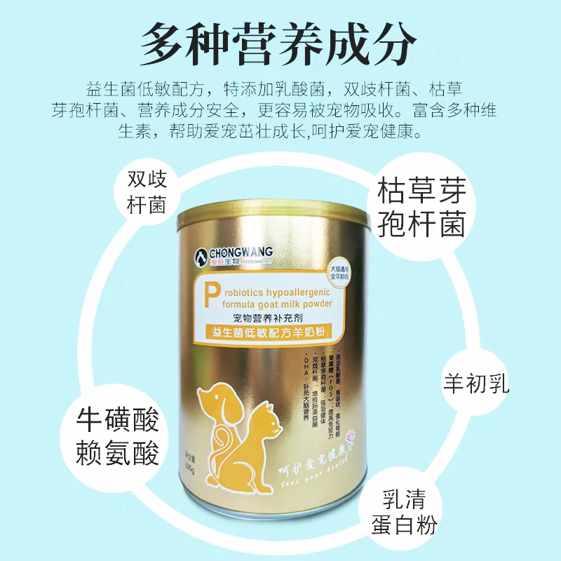 宠旺生物益生菌低敏配方羊奶粉猫狗宠物营养补充剂增强机体猫狗用