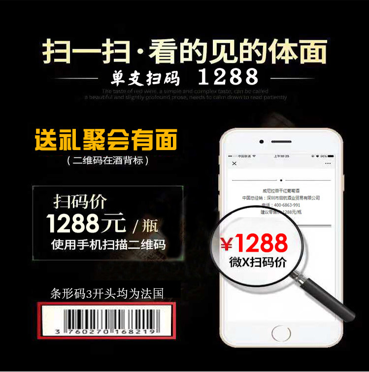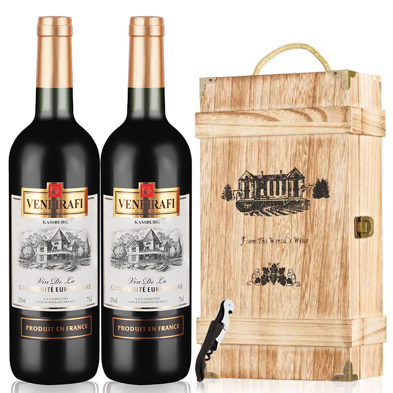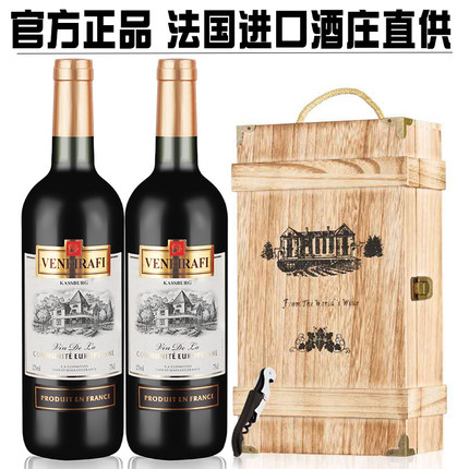 扫描价1288元法国进口威尼拉菲红酒2支装干红葡萄酒双支木箱礼盒