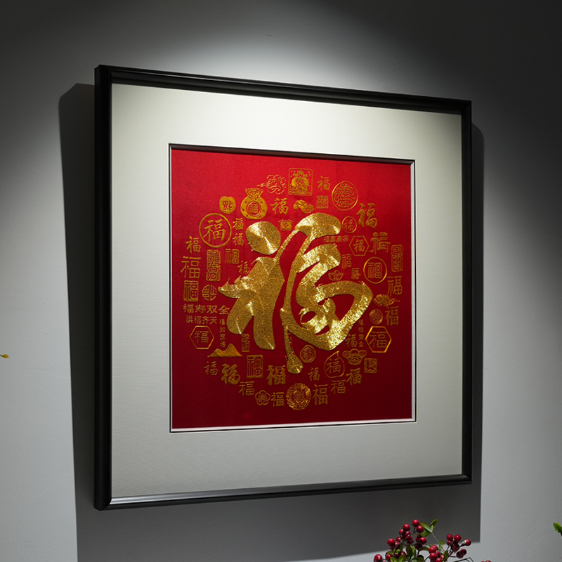 手工苏绣百福图新中式挂画书房卧室客厅玄关成品福禄寿刺绣装饰画