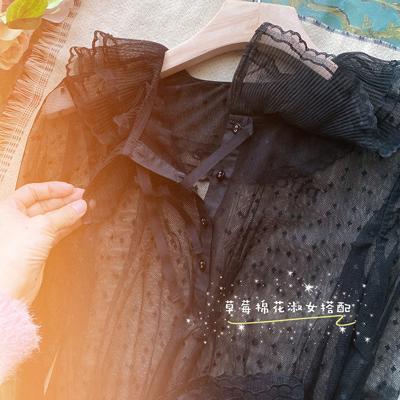 2024秋冬新宝藏单品超仙复古荷叶边翻领娃娃领网纱蕾丝长袖打底衫