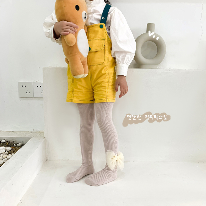 女童打底裤春秋棉薄款小童儿童蝴蝶结连裤袜宝宝白色外穿婴儿袜子