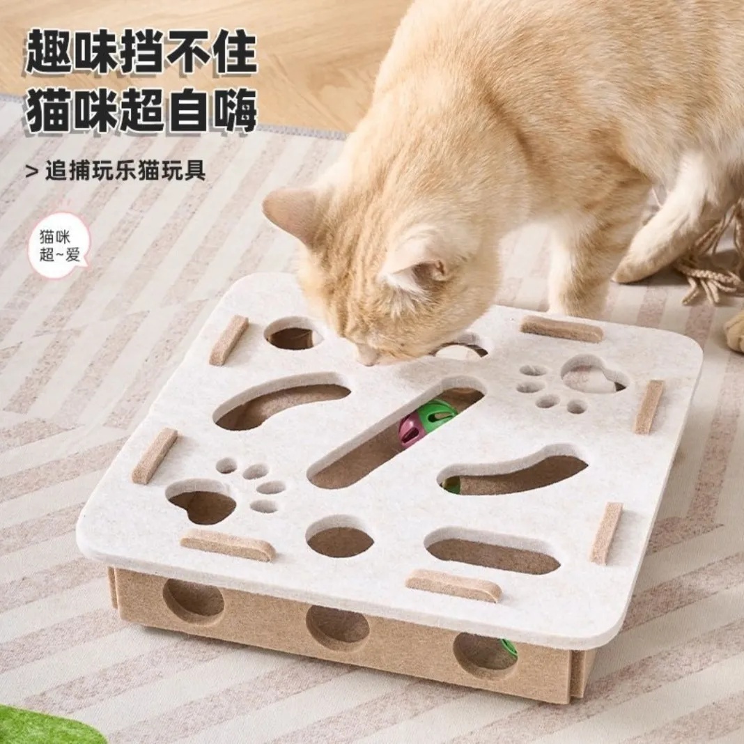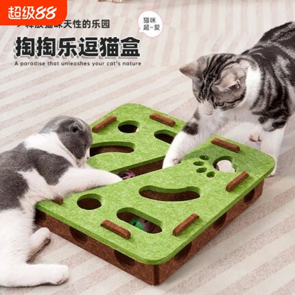 猫玩具自嗨解闷神器小猫宠物猫咪益智迷宫掏洞毛毡盒子逗猫铃铛球