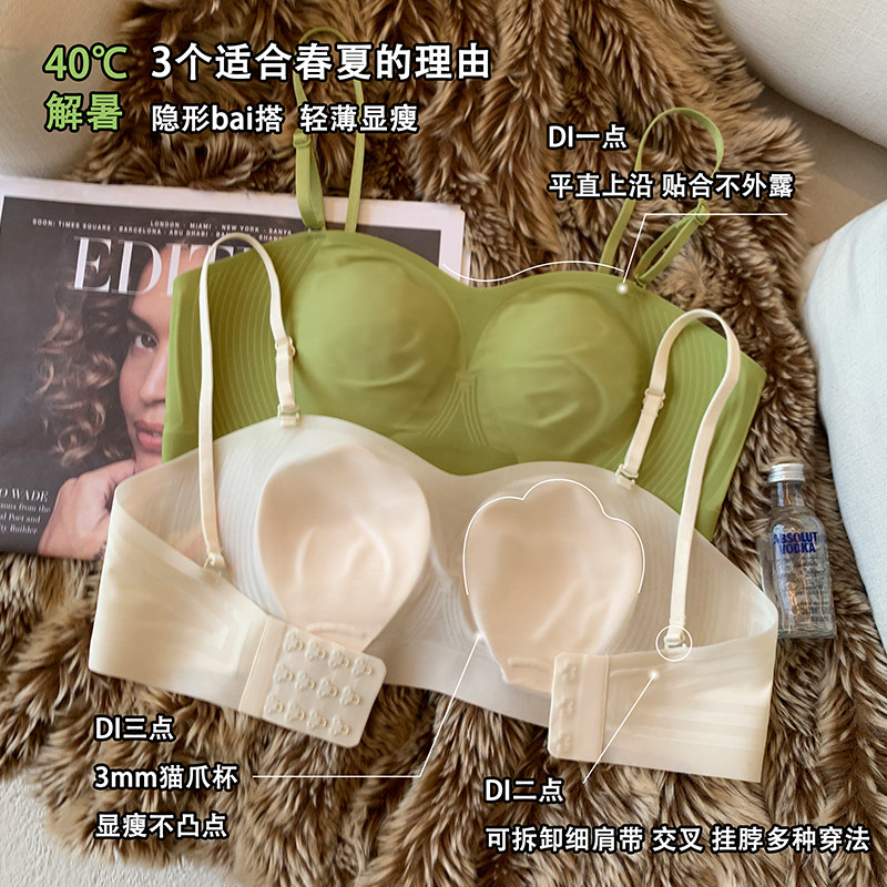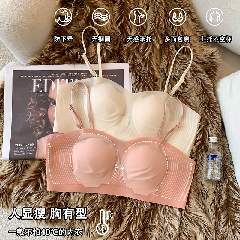 超薄款无痕内衣女大胸显小收副乳防下垂白色抹胸防走光细肩带文胸