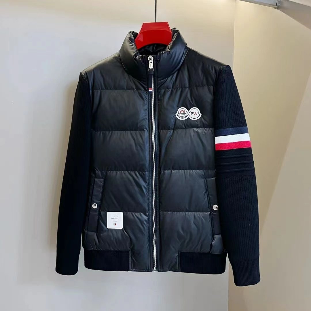 欧货高质感白色立领针织拼接羽绒服男士保暖防寒修身外套短款棉衣