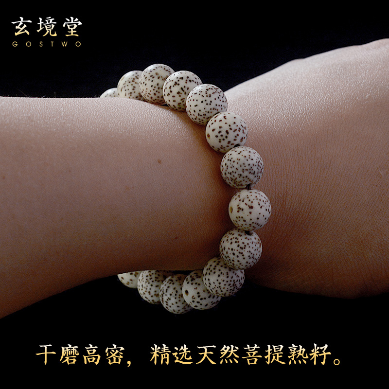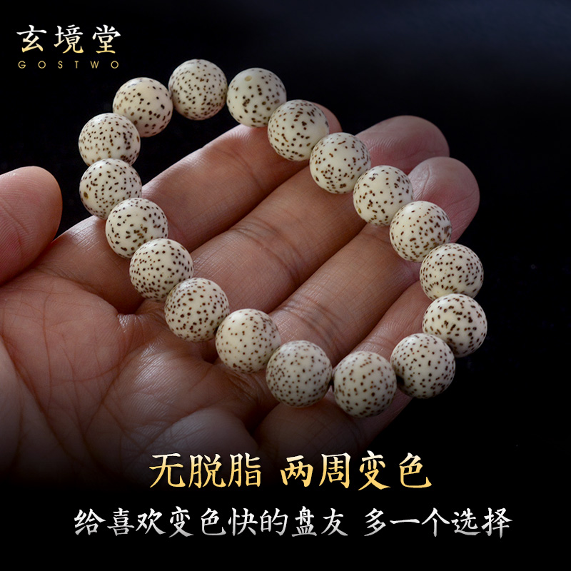 海南原生态星月菩提圆珠11/12单圈手串无脱脂白男女文玩手链佛珠
