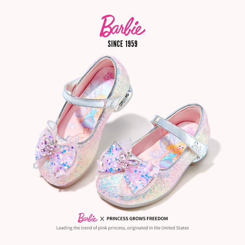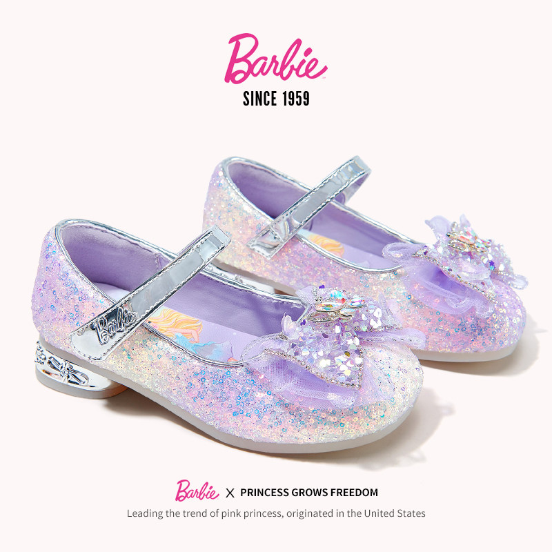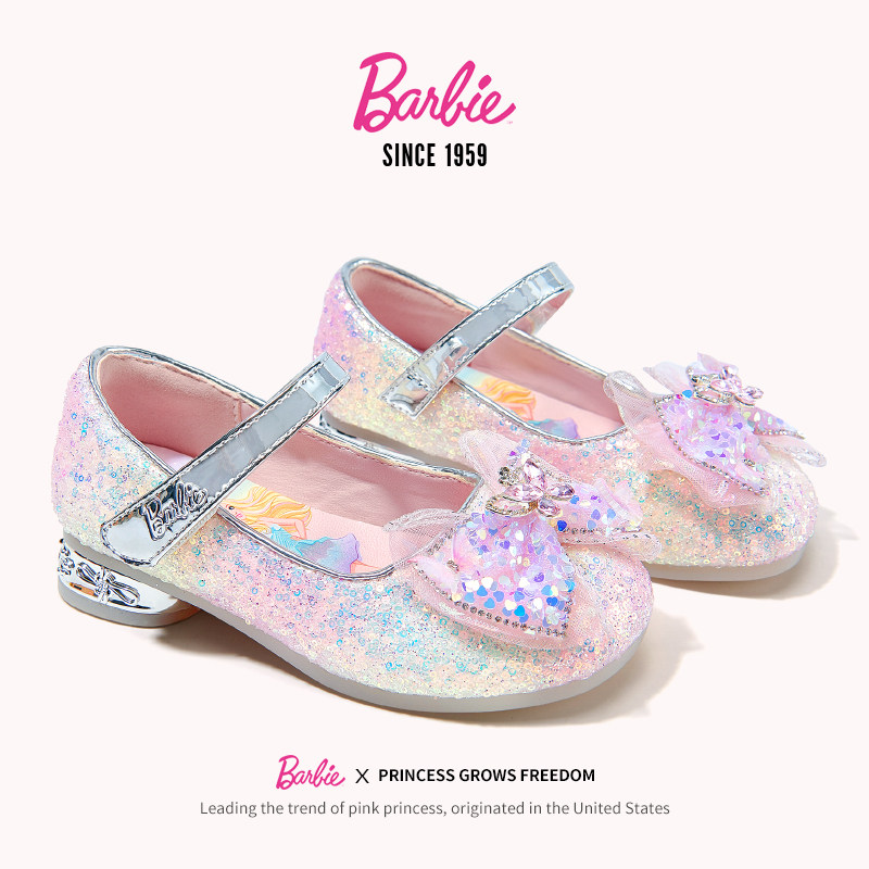 芭比女童水钻公主风皮鞋2026新款