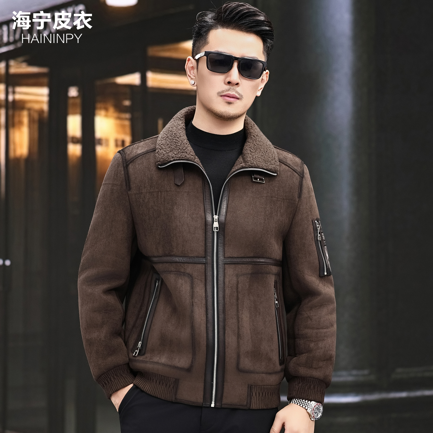 海宁皮毛一体男羊羔毛真皮皮衣男