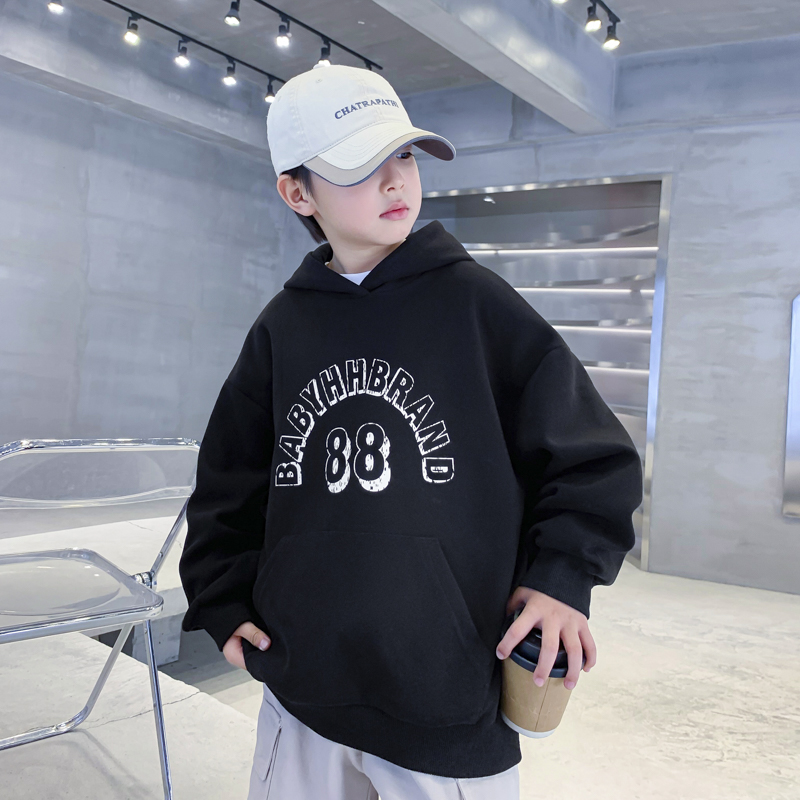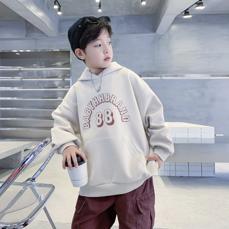 男童秋冬韩系加绒连帽卫衣2025新款中大儿童男孩冬季酷帅宽松上衣