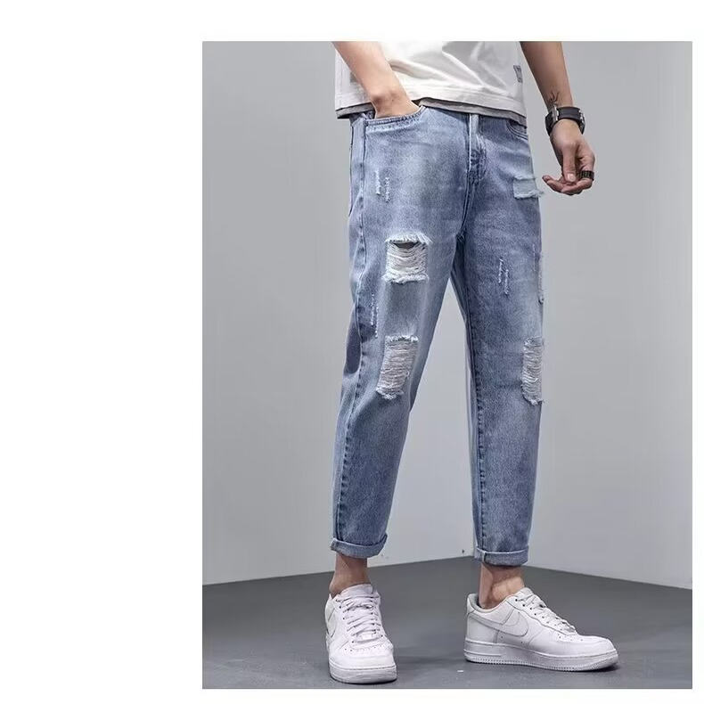 休闲牛仔裤男士秋季2025新款潮牌修身小脚九分裤秋天宽松直筒长裤