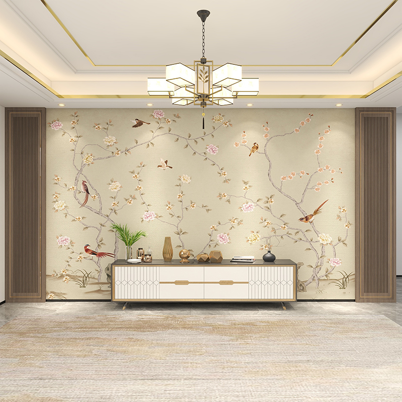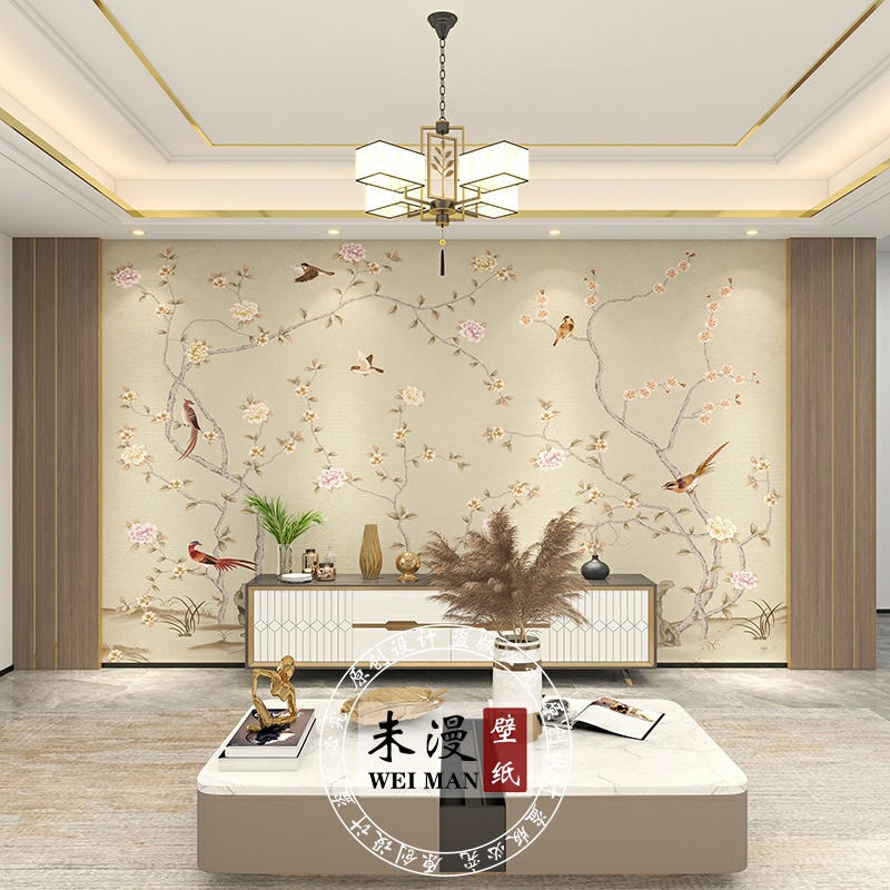 现代简约花鸟墙纸新中式墙布客厅卧室电视背景墙壁纸壁Y布影视壁