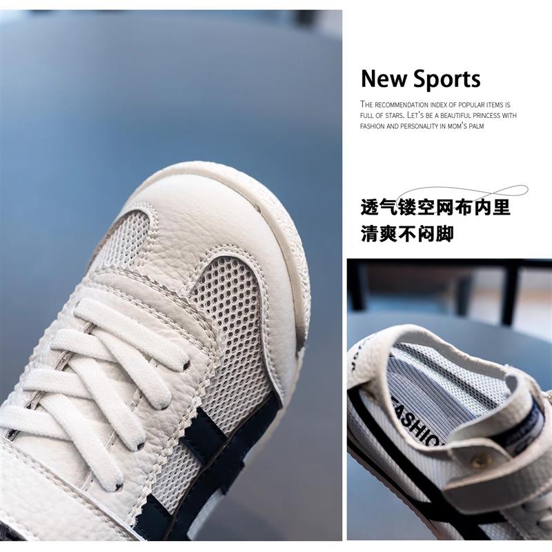 儿童网鞋2025夏季新款女童网布阿甘鞋透气男童网眼小白鞋真皮板