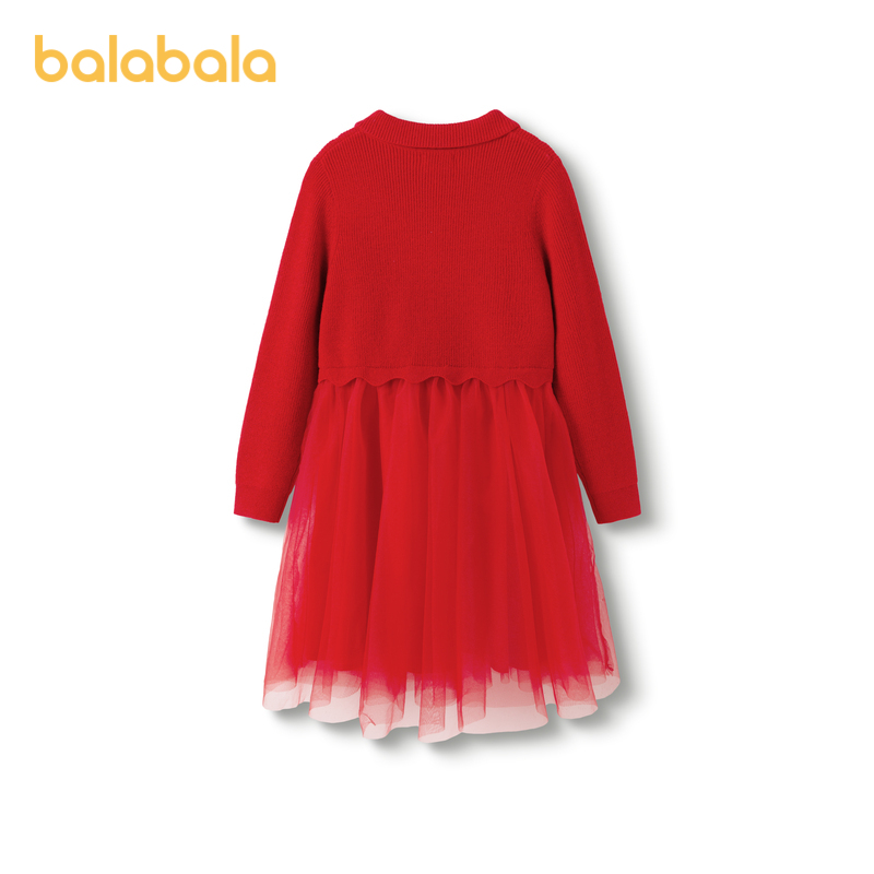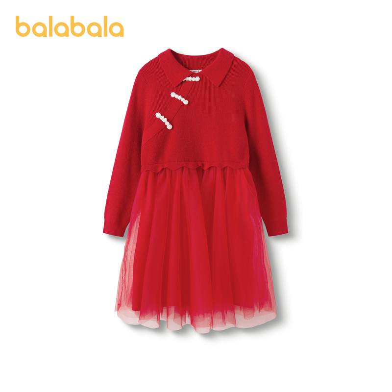 巴拉巴拉女童网纱连衣裙儿童拜年服新款洋气大童国风红色裙子