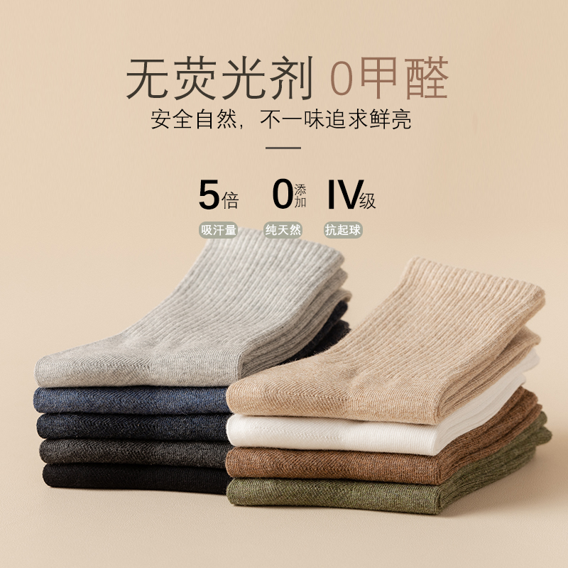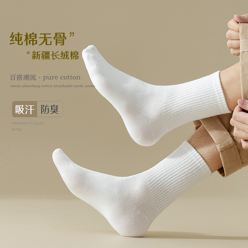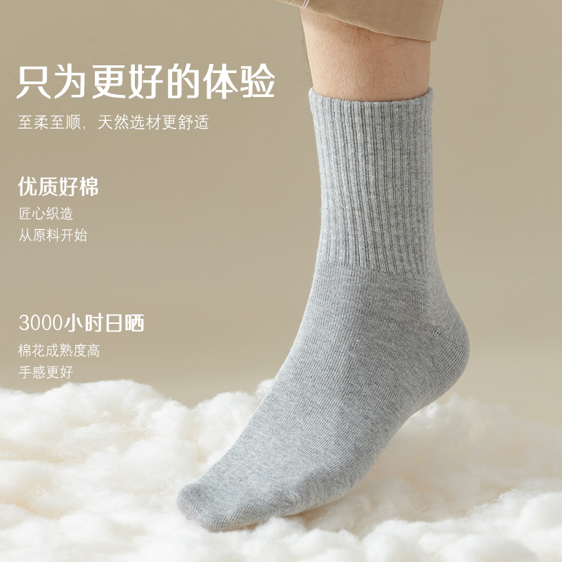 纯棉袜子男士秋冬吸汗透气防臭全棉运动袜黑色商务长袜无骨中筒袜
