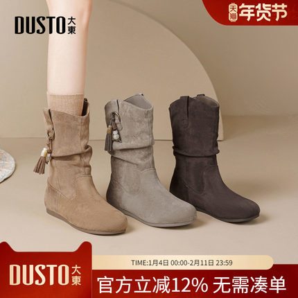 大东dd堆堆靴短靴女2025新款美拉德西部牛仔女靴冬季复古勃肯靴子