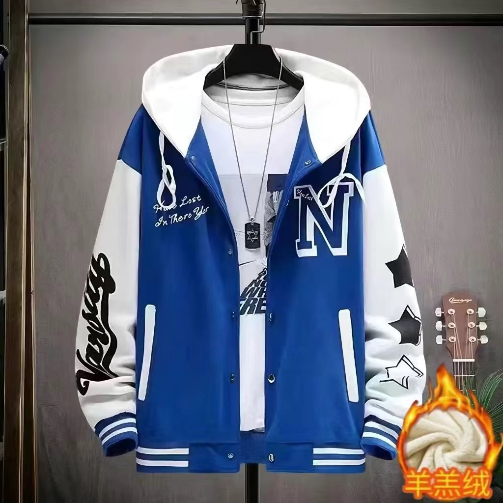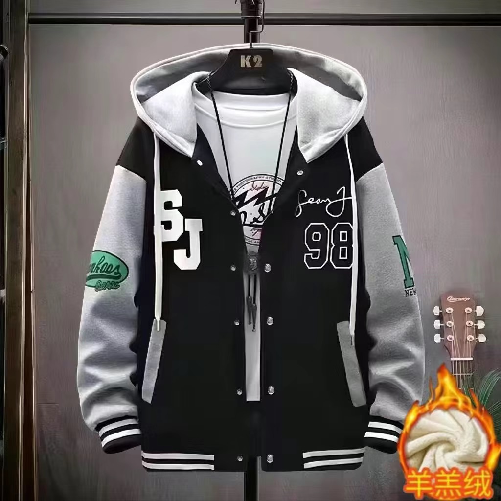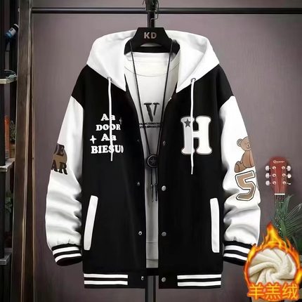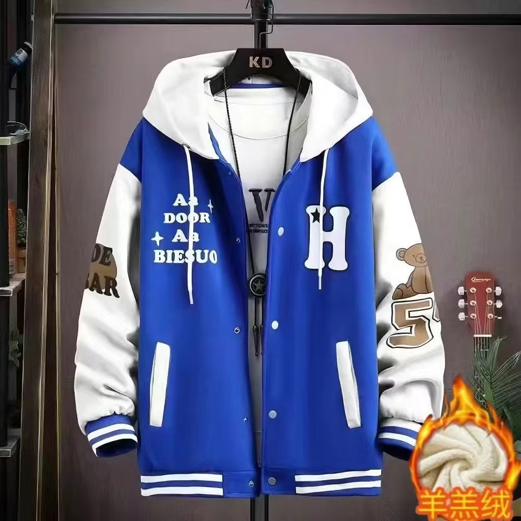 冬季加绒加厚男士外套潮流韩版夹克青少年学生上衣服休闲工装褂子