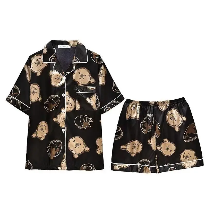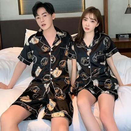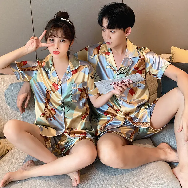 情侣睡衣女夏季冰丝短袖薄款网红加肥加大码男士仿真丝绸家居服