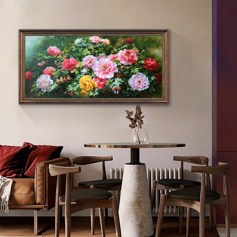 牡丹花卉客厅油画美式卧室装饰画欧式餐厅壁画新中式花开富贵挂画