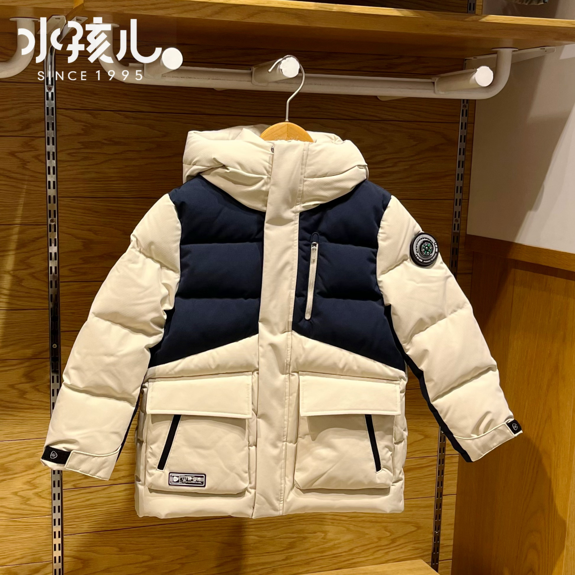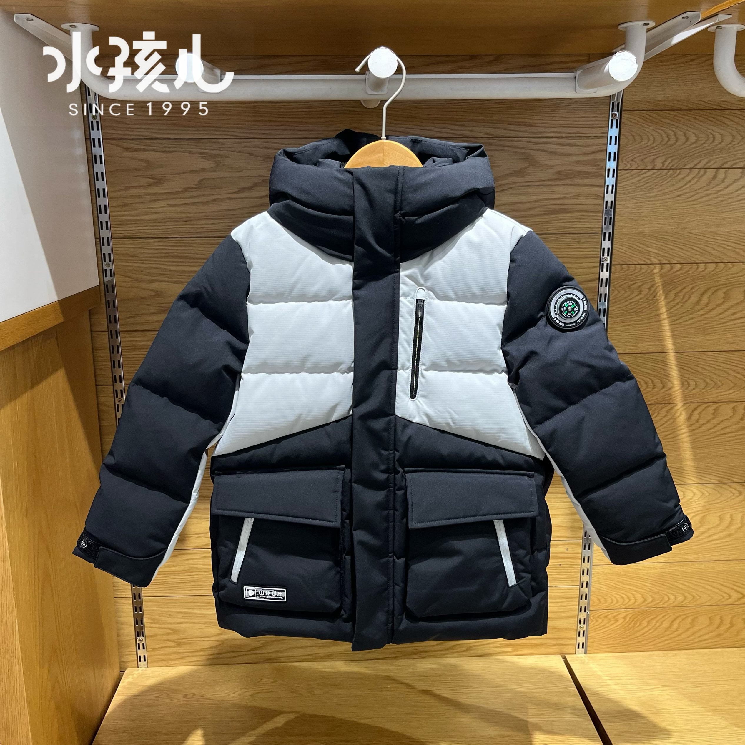 正品水孩儿童装男童中长款羽绒服24冬季新款加厚保暖白鸭绒厚外套