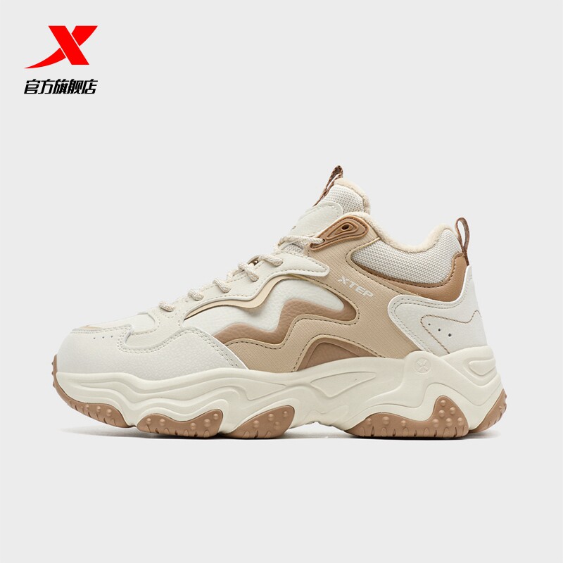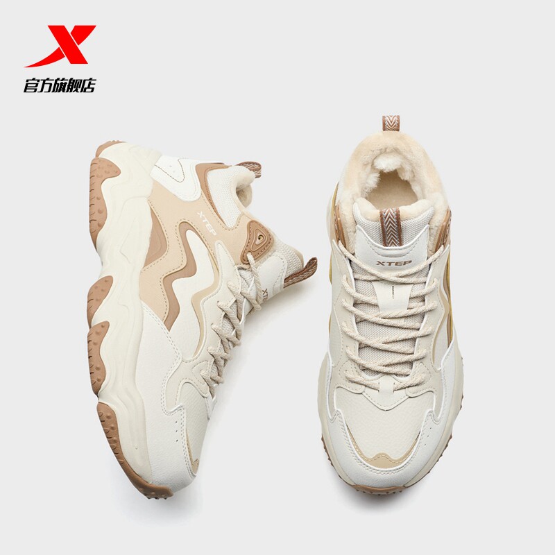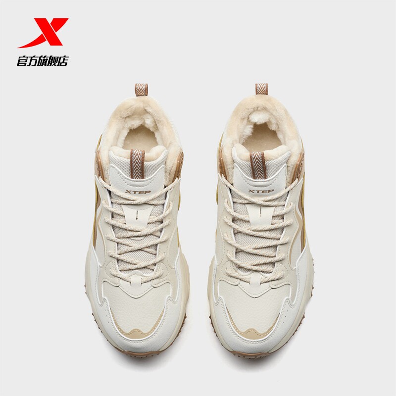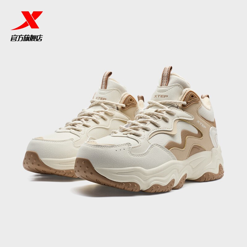 特步女鞋火山棉鞋2026新款冬季加绒轻便厚底大棉休闲鞋高帮运动鞋