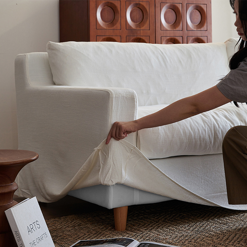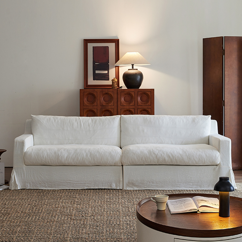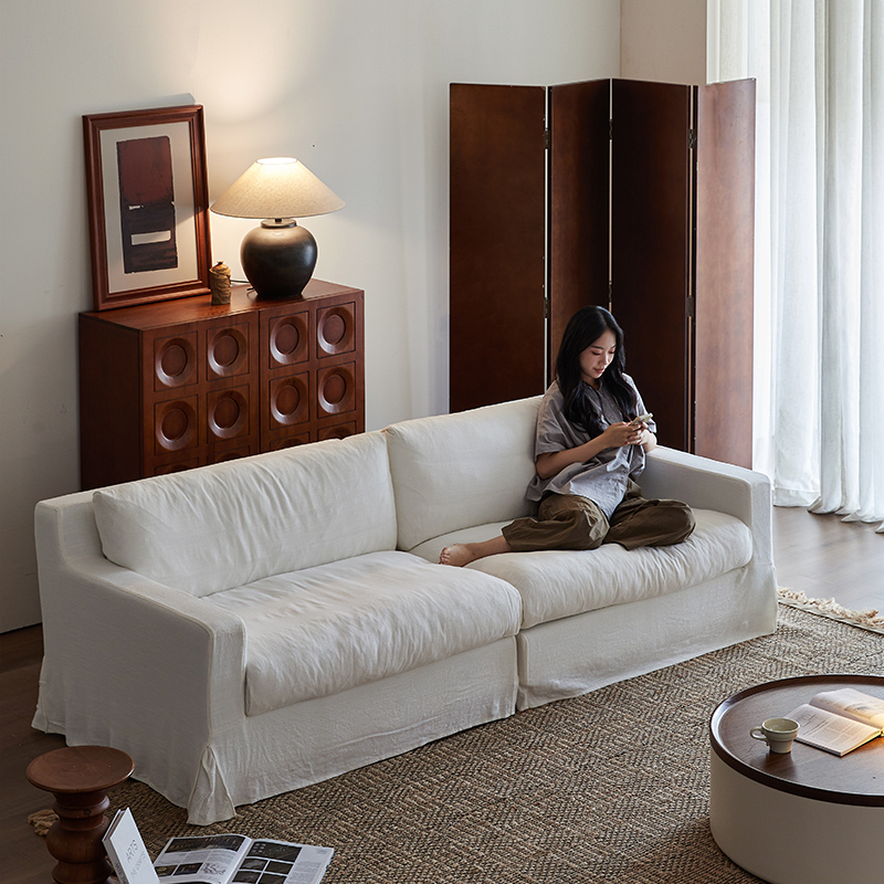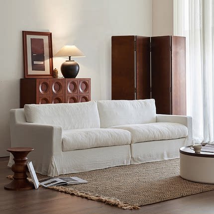 布艺沙发侘寂风棉麻法式复古客厅小户型直排三人可拆洗亚麻云沙发