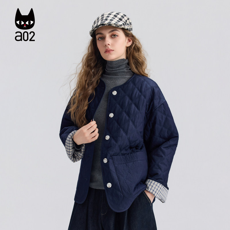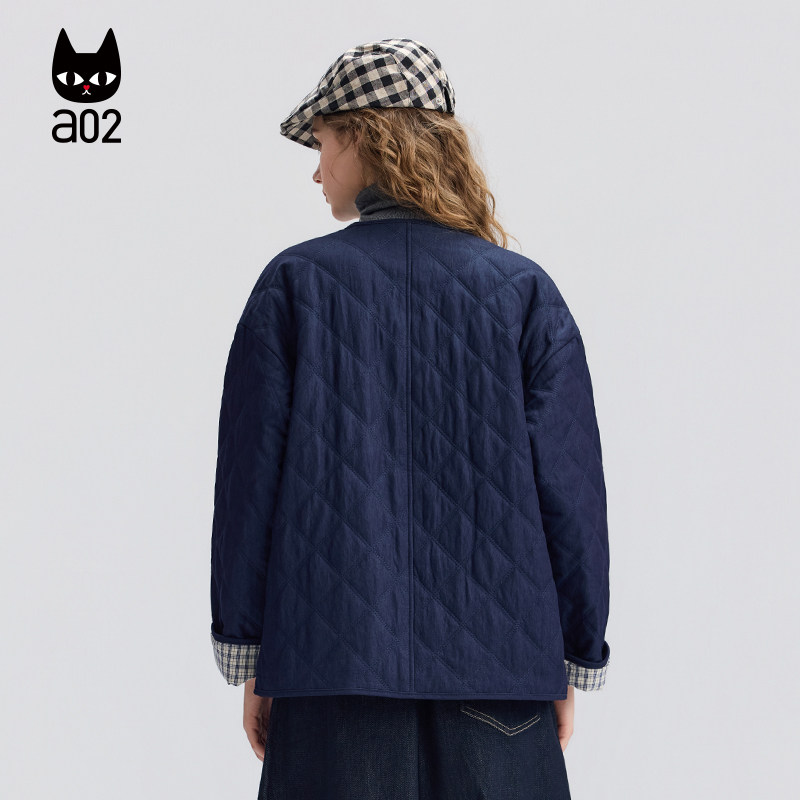 a02宽松菱格棉服女2025新款冬季加厚保暖夹棉外套大口袋冬装棉衣