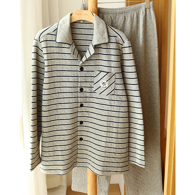 冬季加厚空气棉睡衣男款情侣套装女款睡衣秋冬夹棉长袖家居服外穿