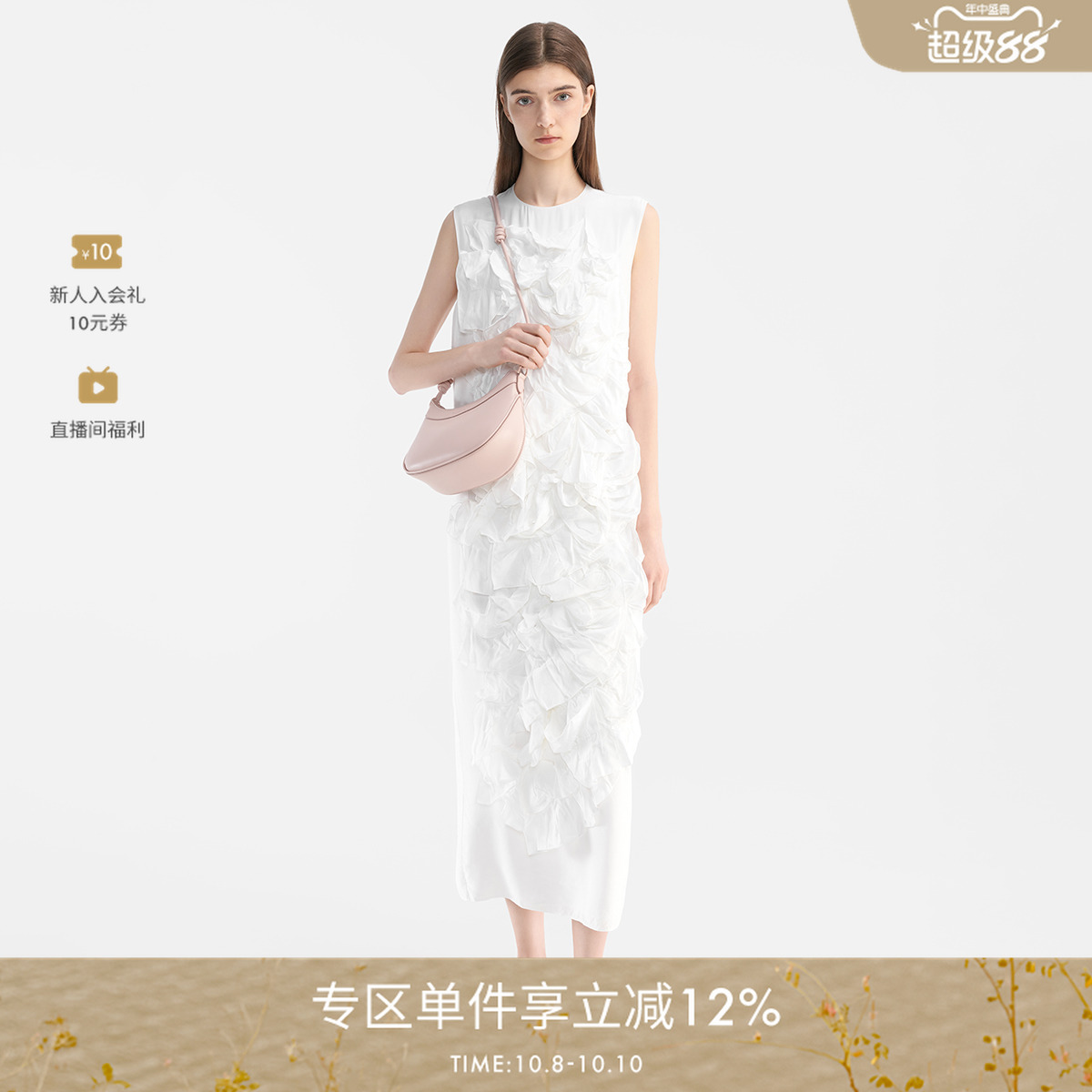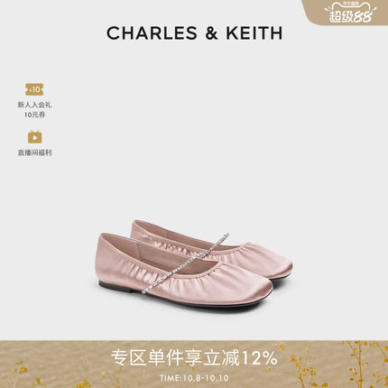 CHARLES&KEITH秋冬女鞋CK1-70900559平底缎面褶皱链条芭蕾舞鞋