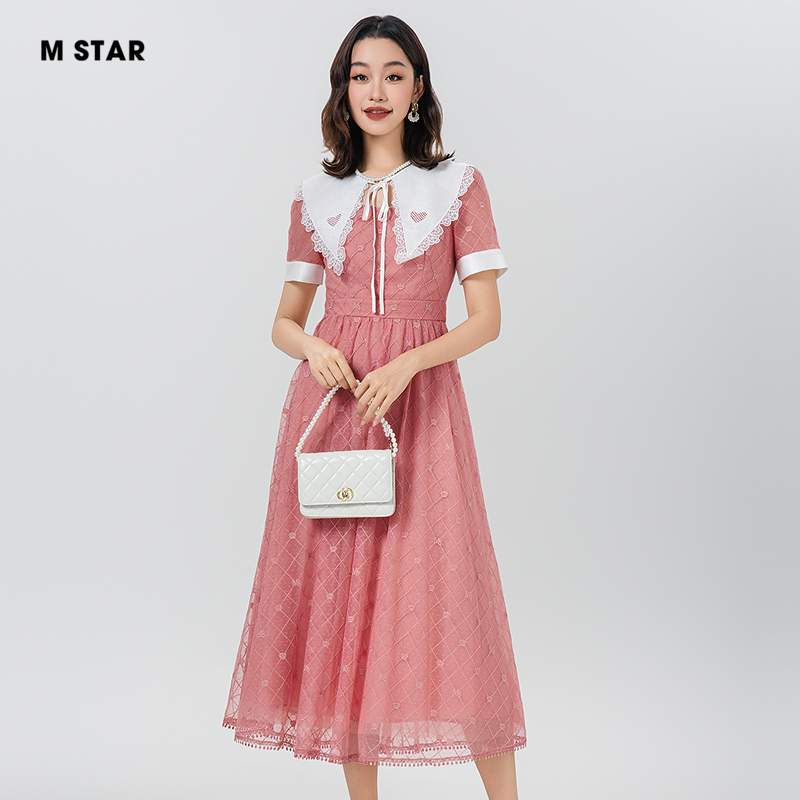 【三件8折】M STAR夏季法式度假网纱蕾丝连衣裙女百搭高级感裙子