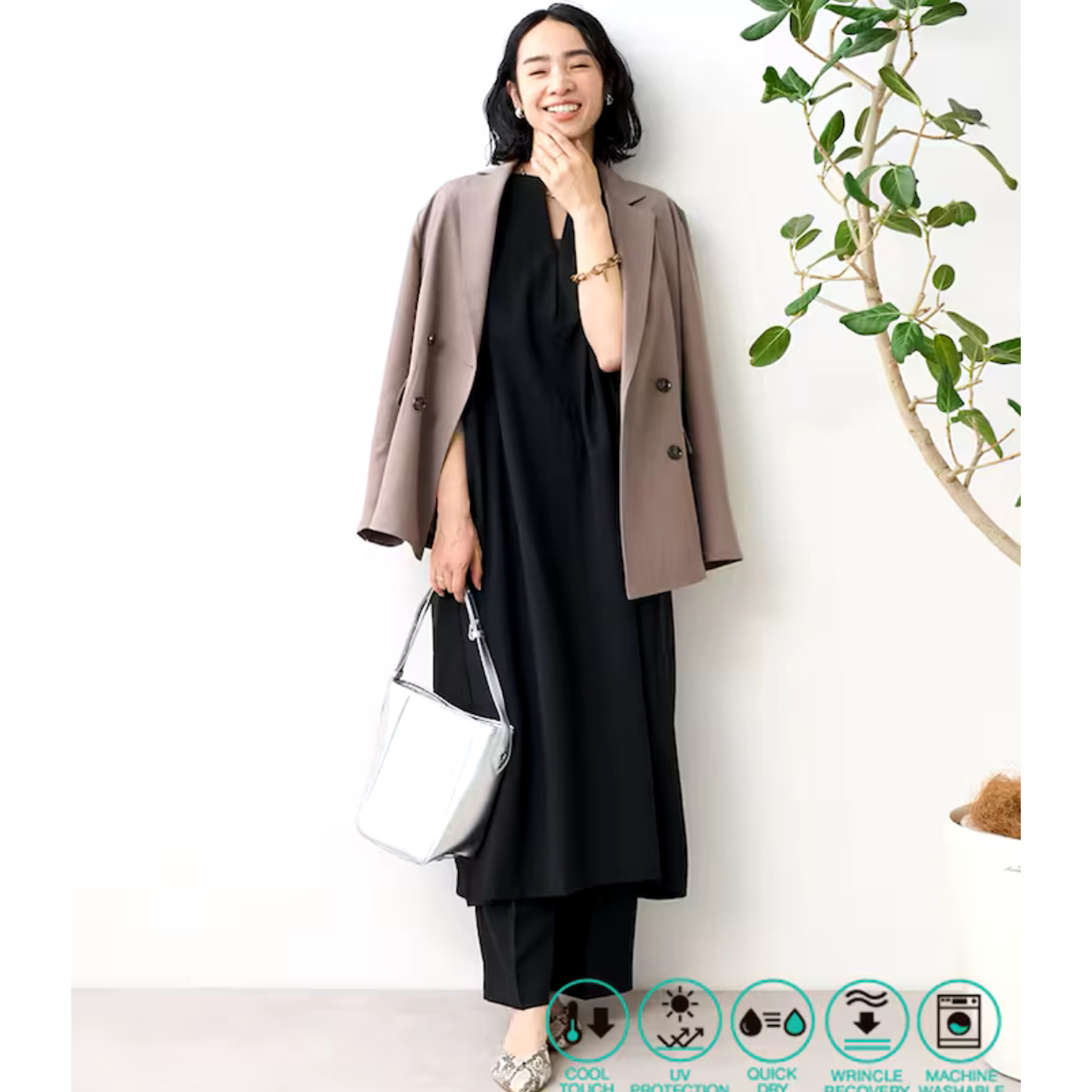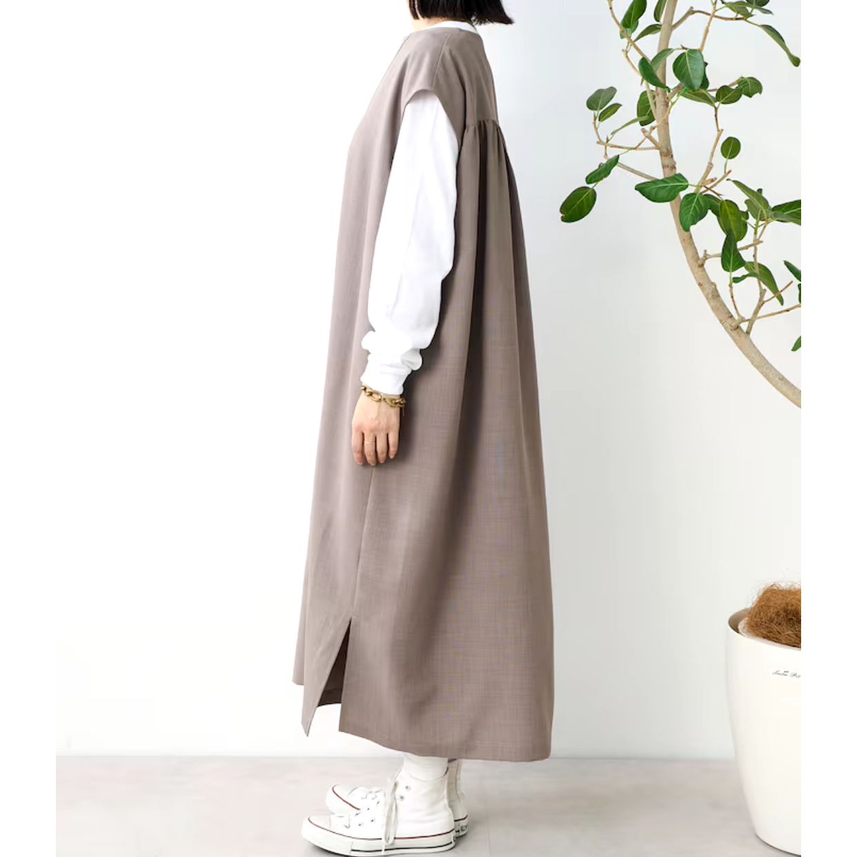 日单春夏新款简约气质金属扣V领无袖开叉麻调连衣裙马甲裙女29544