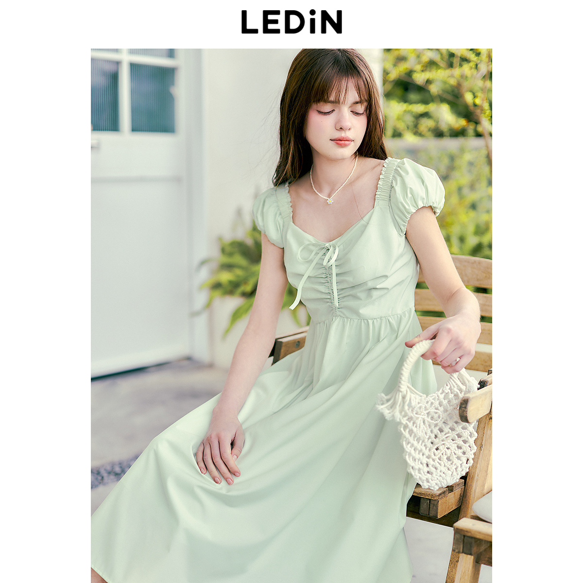 乐町简约收腰连衣裙年夏季新款小个子遮肉泡泡袖韩系初恋连衣裙