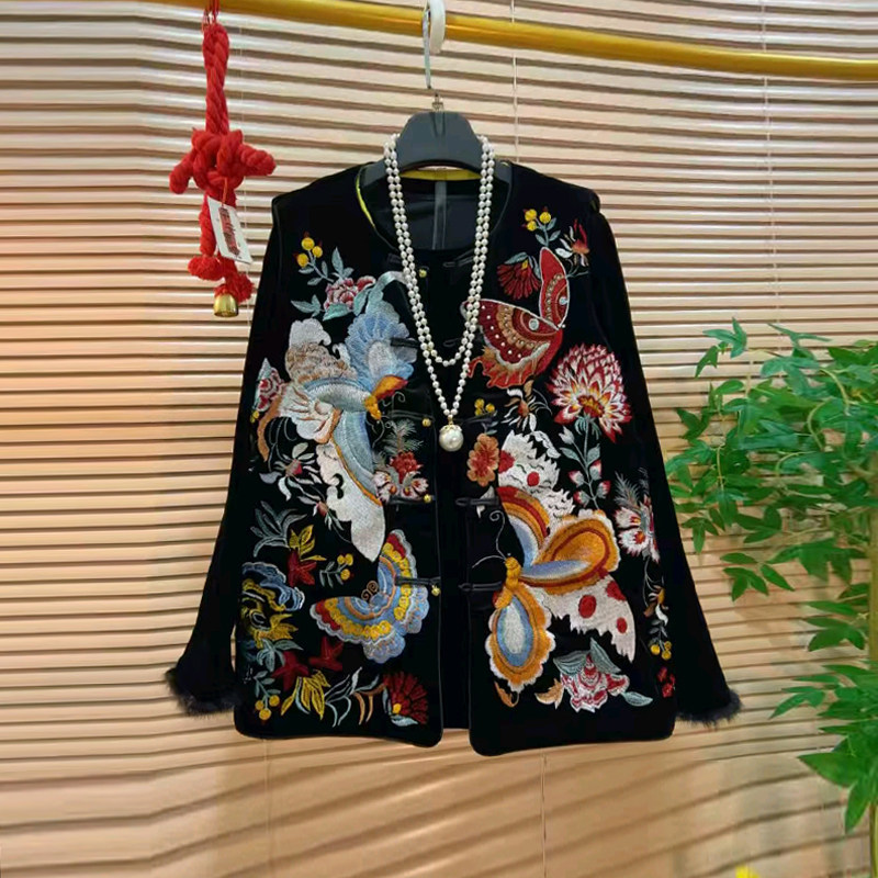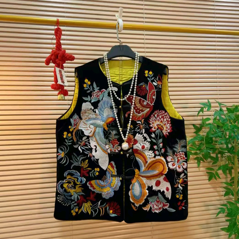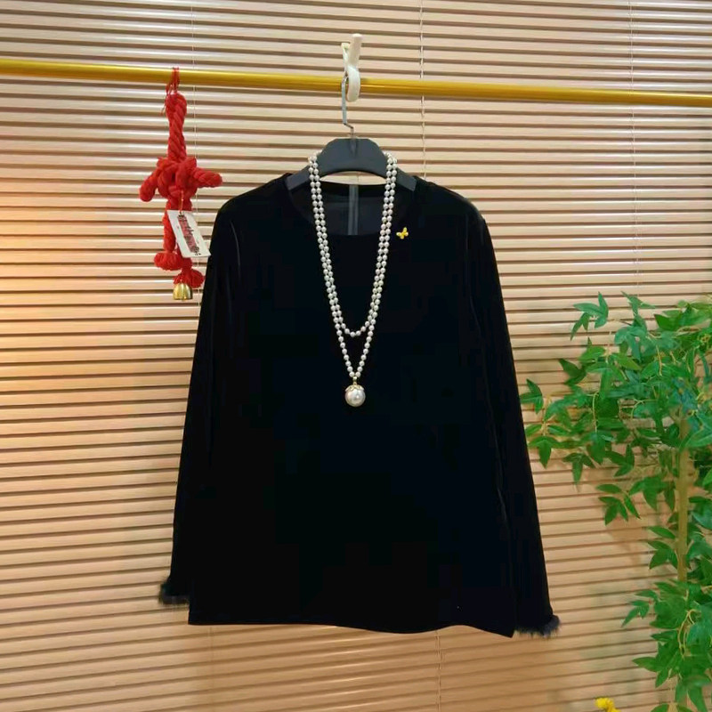 胖妹妹毛毛袖口小衫法式设计大码女装冬季款洋气复古刺绣图案马甲