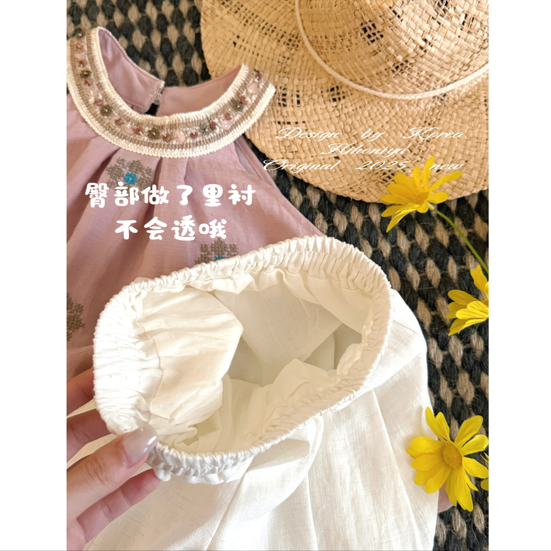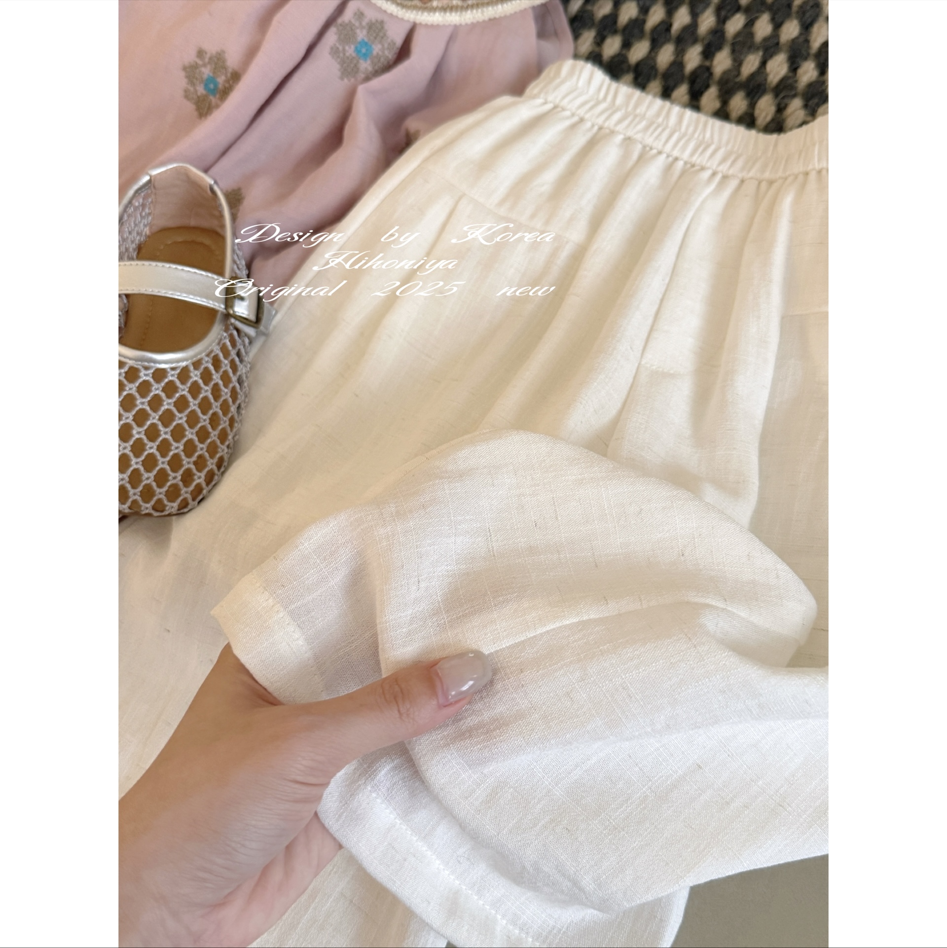 Spring韩国童装2025夏季新款亲子高级白色亚麻透阔腿裤女童休闲裤