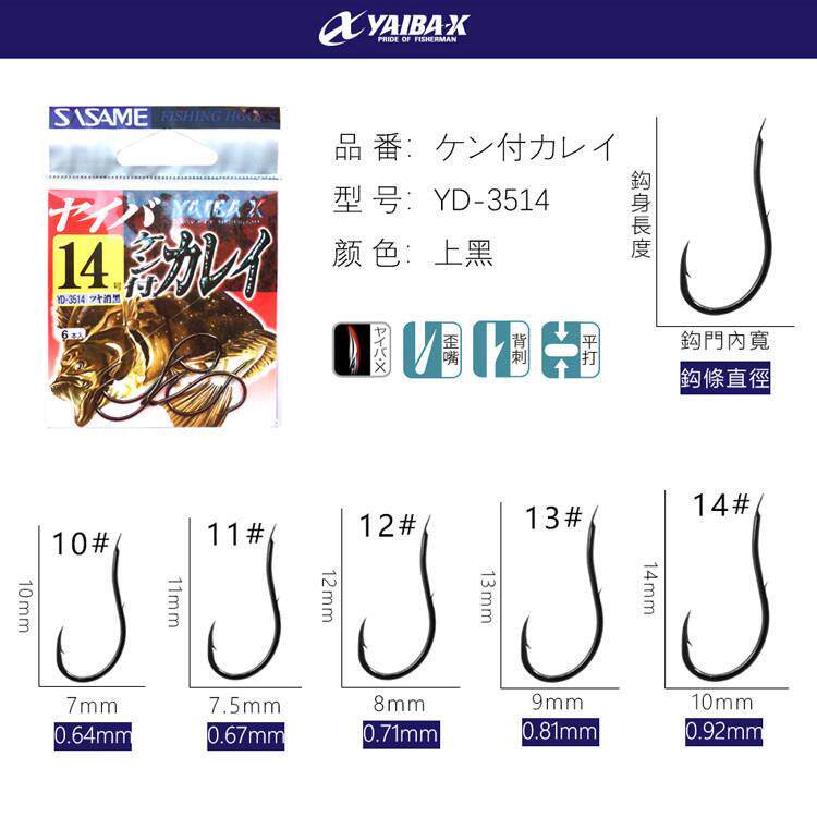 日本进口长柄背刺鱼钩 海钓船钓比目鱼矶钓黑鲷钓钩YD-3514