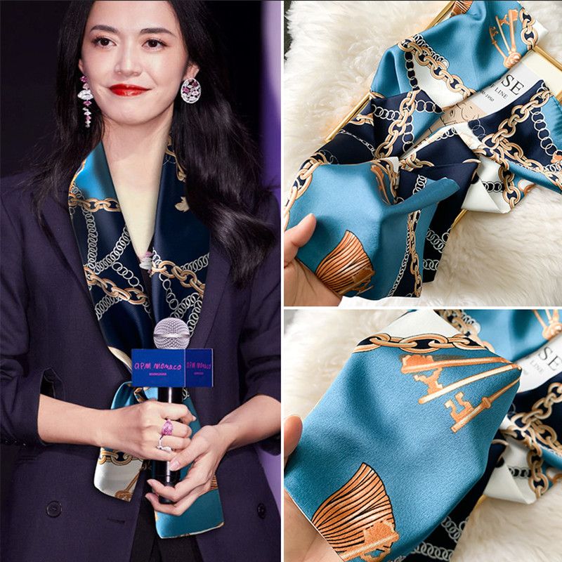细窄长条小丝巾女春秋款洋派时尚百搭装饰领巾薄X款围巾长方