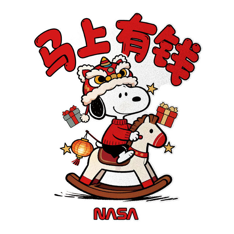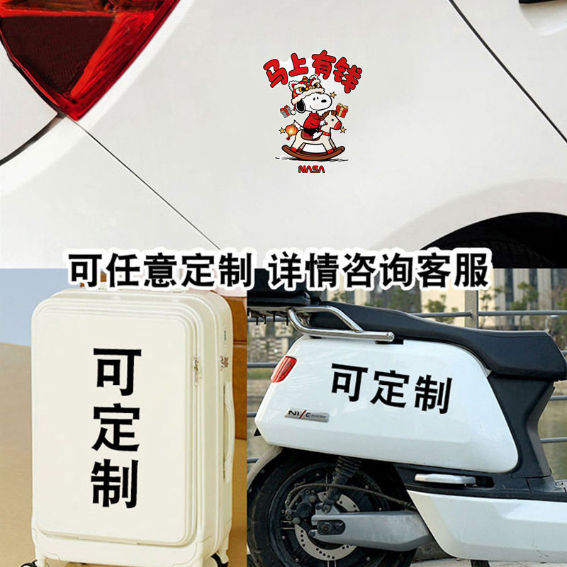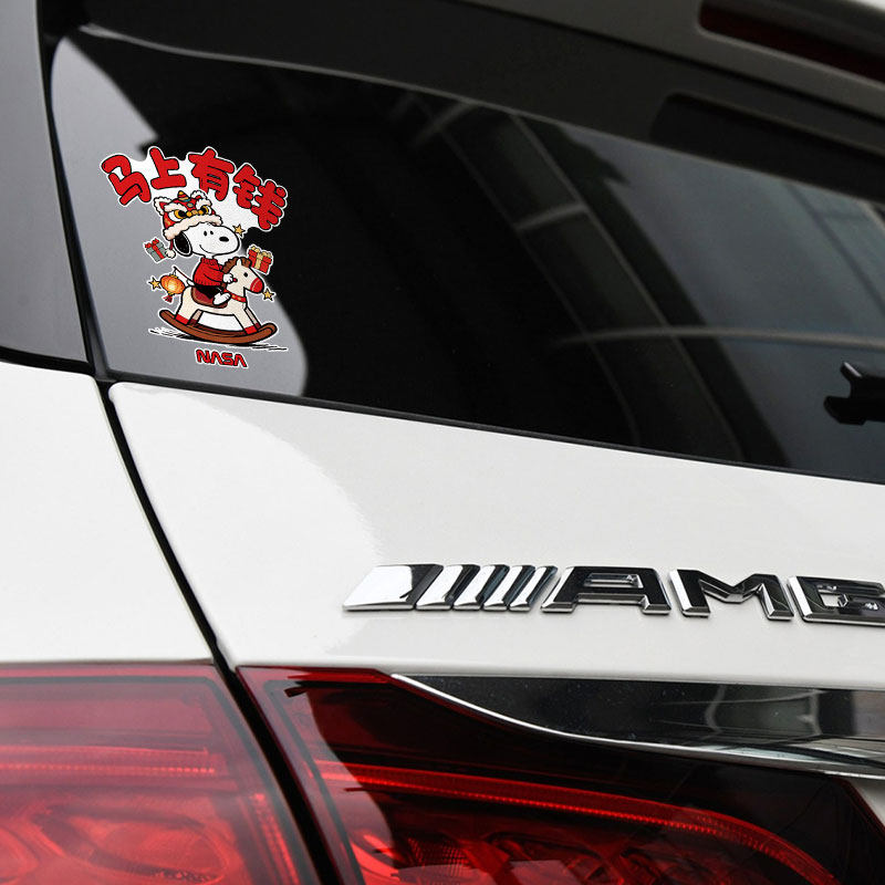 NASA联名史努比春节新年过年马上有钱反光汽车贴纸车身贴后玻璃贴