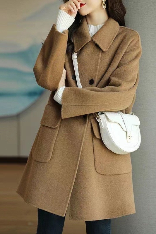200斤美拉德毛呢外套女宽松显瘦加肥加大码胖妹妹红色羊绒呢大衣