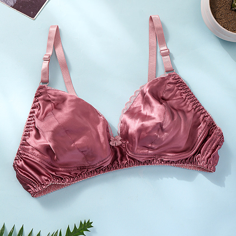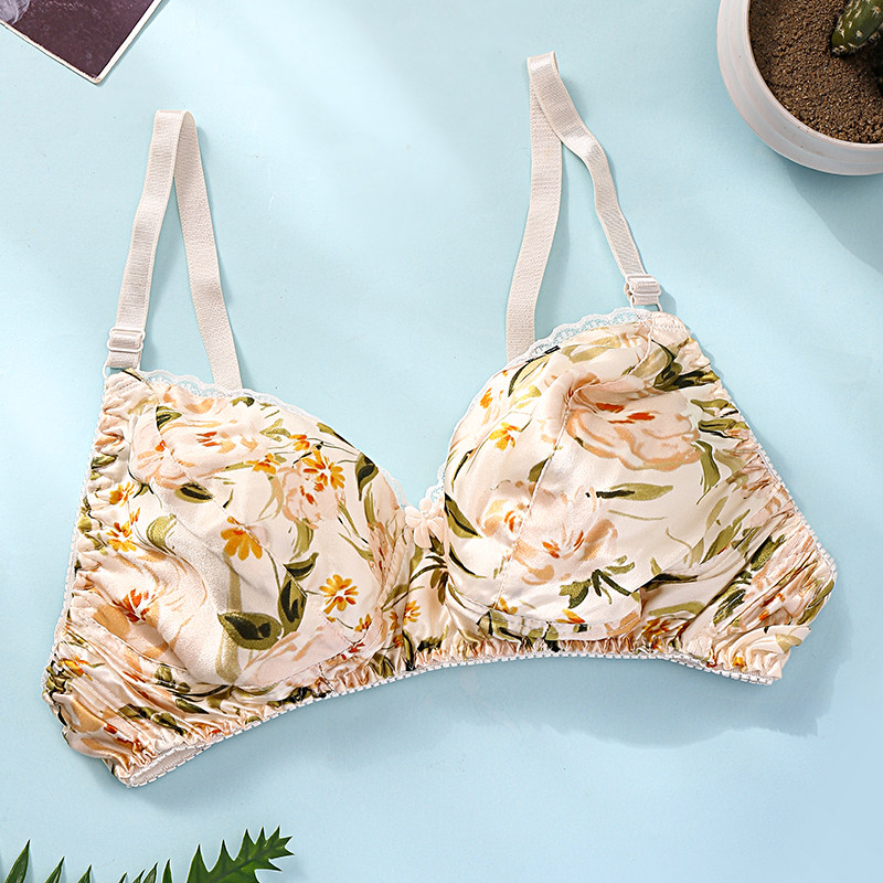 双面真丝文胸薄款100%桑蚕丝胸罩无痕内衣女无海绵无钢圈大码花色