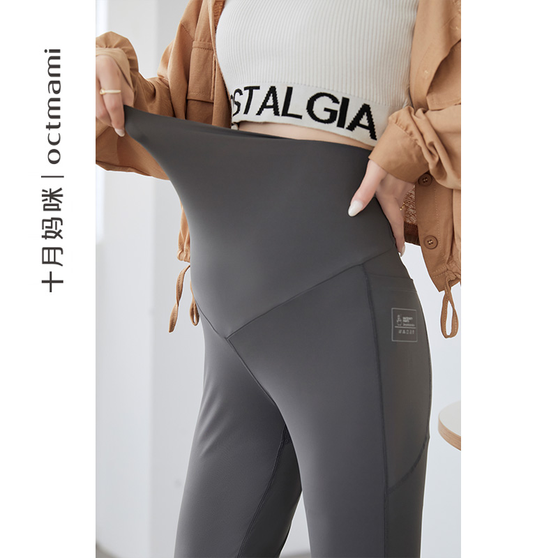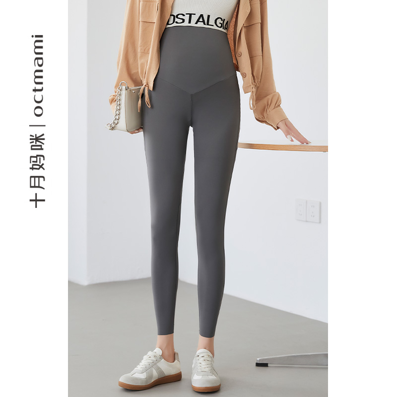 十月妈咪孕妇鲨鱼皮打底裤春秋外穿托腹芭比瑜伽安全托腹裤子秋装