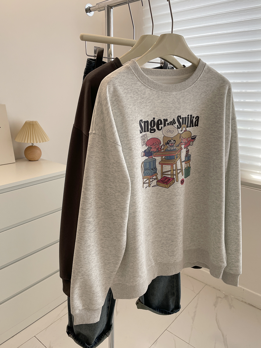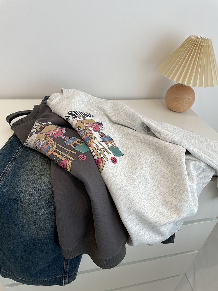 卡通印花宽松圆领长袖卫衣