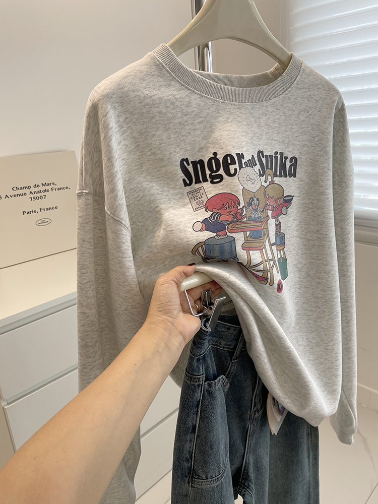 韩系卡通印花宽松休闲卫衣女!秋季百搭显瘦圆领慵懒套头学生上衣