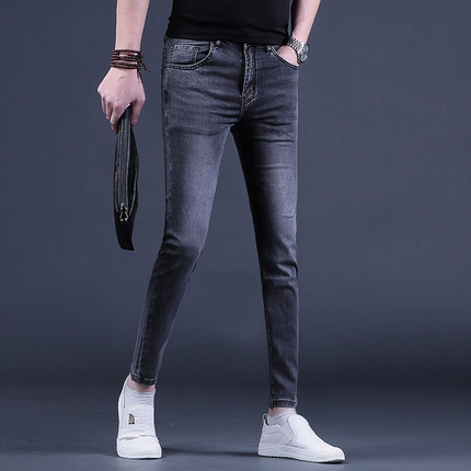夏季裤子男士九分裤潮流弹力修身小脚牛仔裤潮牌9分休闲百搭薄款