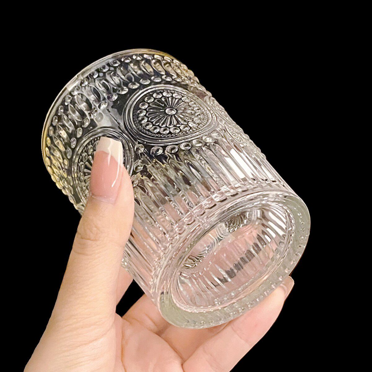 下拉详情领优惠ins北欧风复古浮雕玻璃杯圆形饮料杯果汁杯水杯