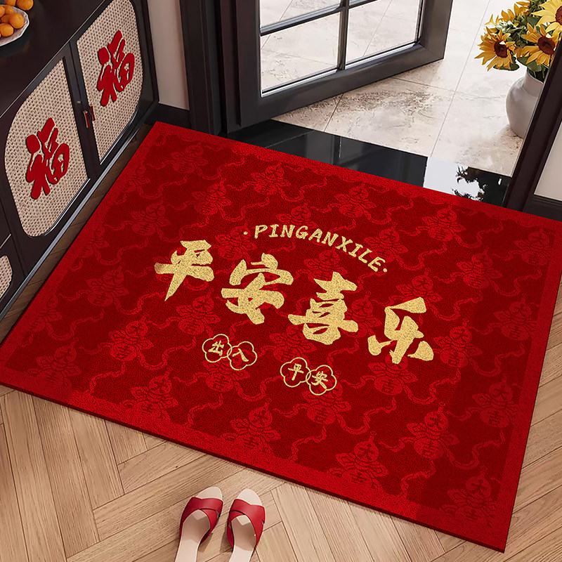 2025新年入户门地垫红色丝圈进门脚垫玄关家用乔迁喜庆除尘地毯