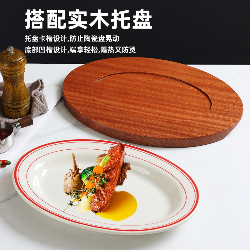 德士敦西餐餐盘耐高温陶瓷盘美式绿线椭圆形烤箱专用牛排盘干蒸盘