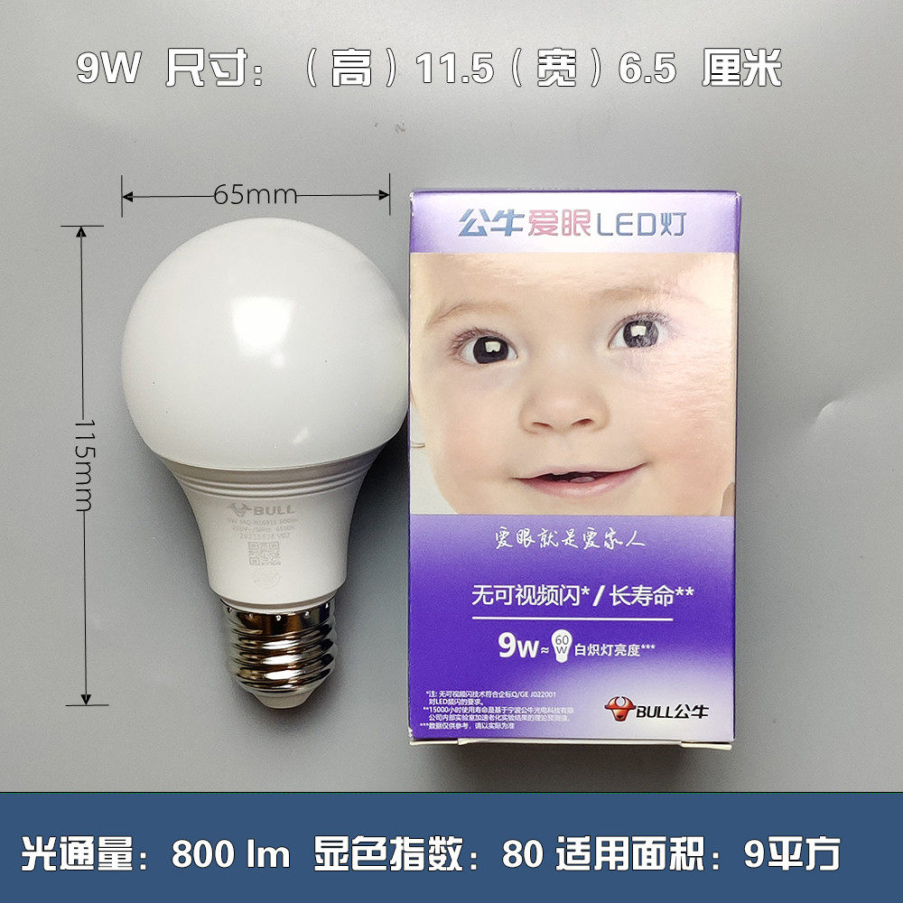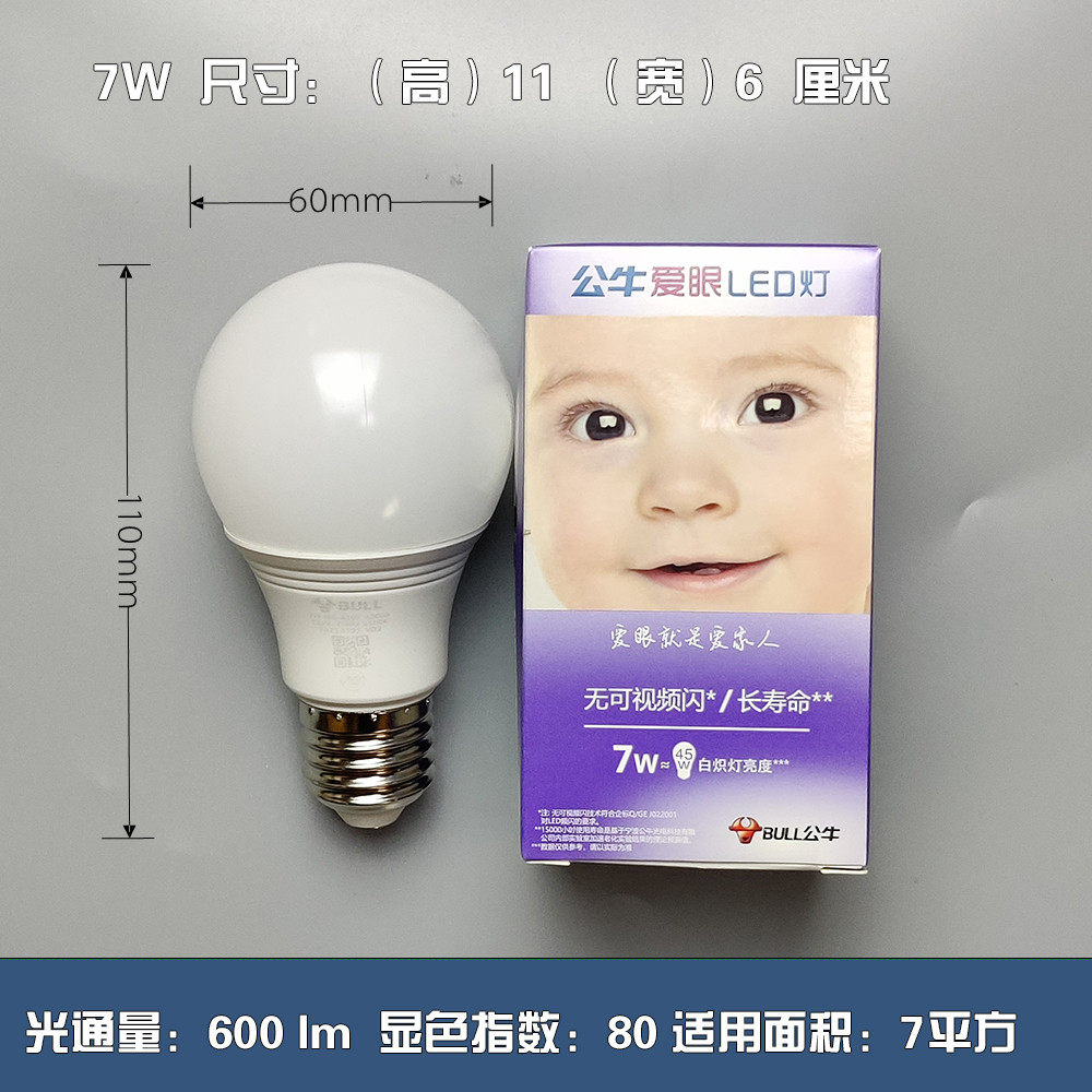 公牛led灯泡螺口超亮节能卧室e27爱护眼照明家用省电螺纹球泡灯