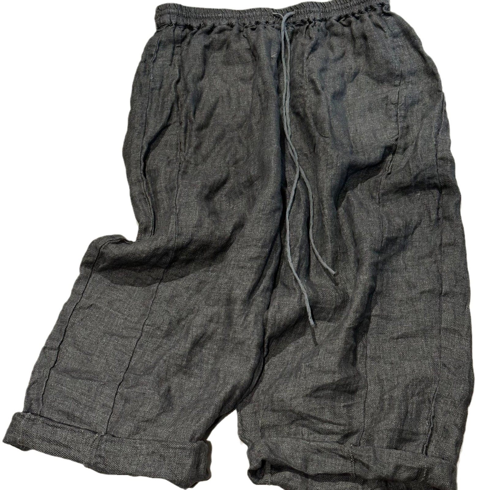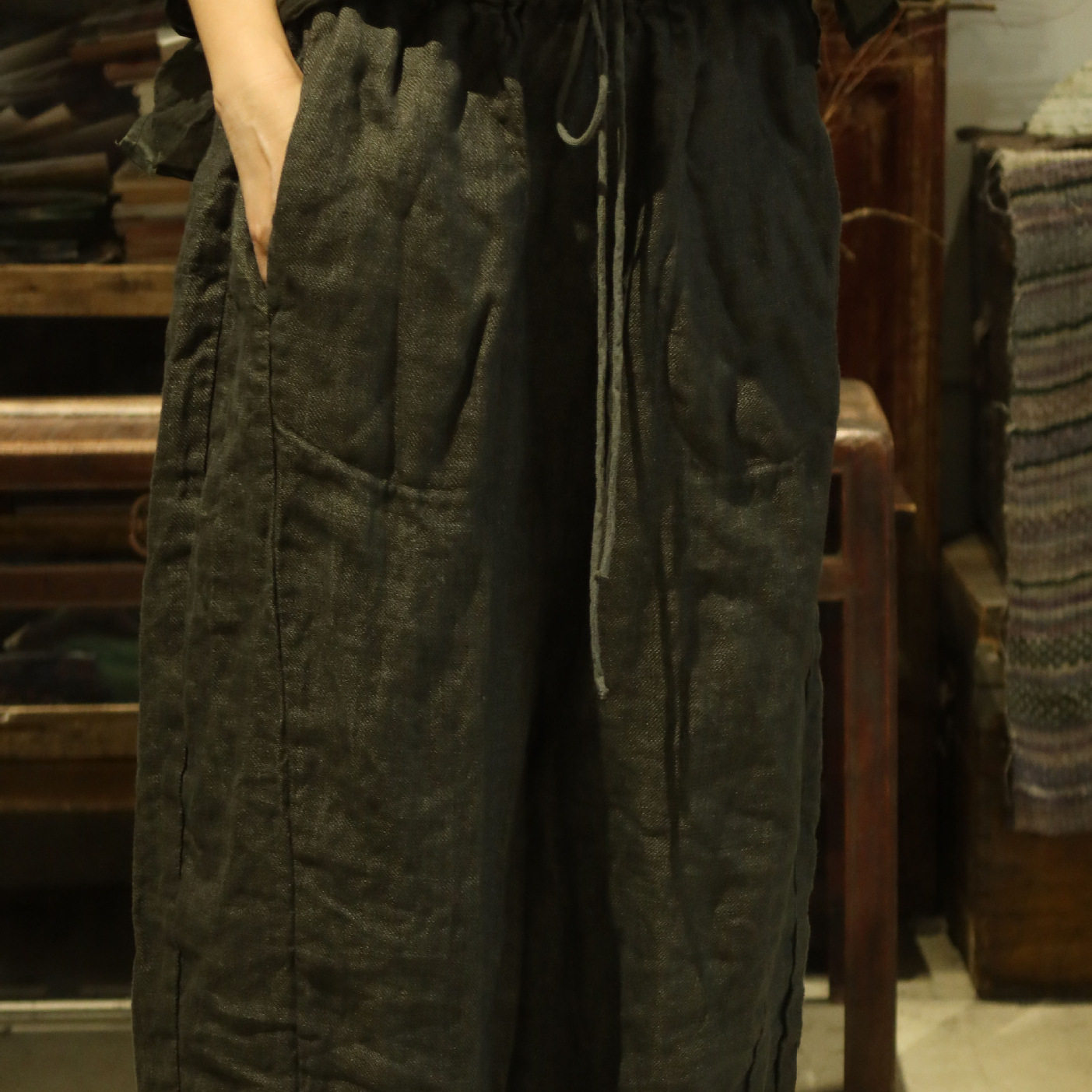 素年原创设计新款宽松文艺复古单层双层色织亚麻系带休闲裤麻裤