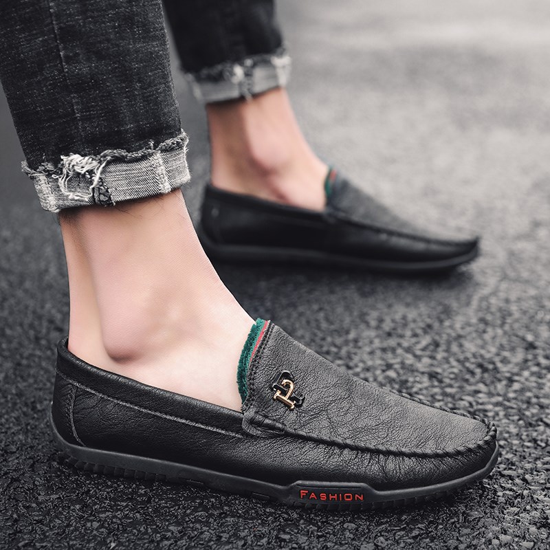男鞋豆豆鞋男2025新款夏季潮流一脚蹬懒人开车英伦百搭休闲黑皮鞋