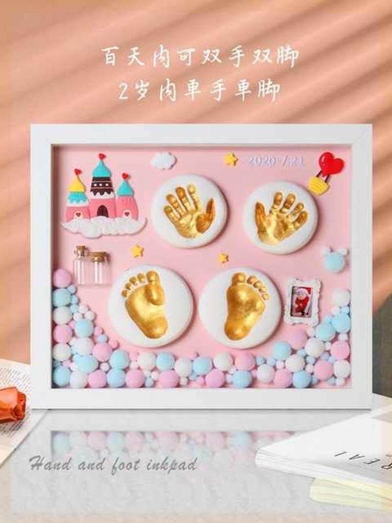 极速成长粉色相框意义手脚印手足印生成配饰O挂画立体手印泥婴幼